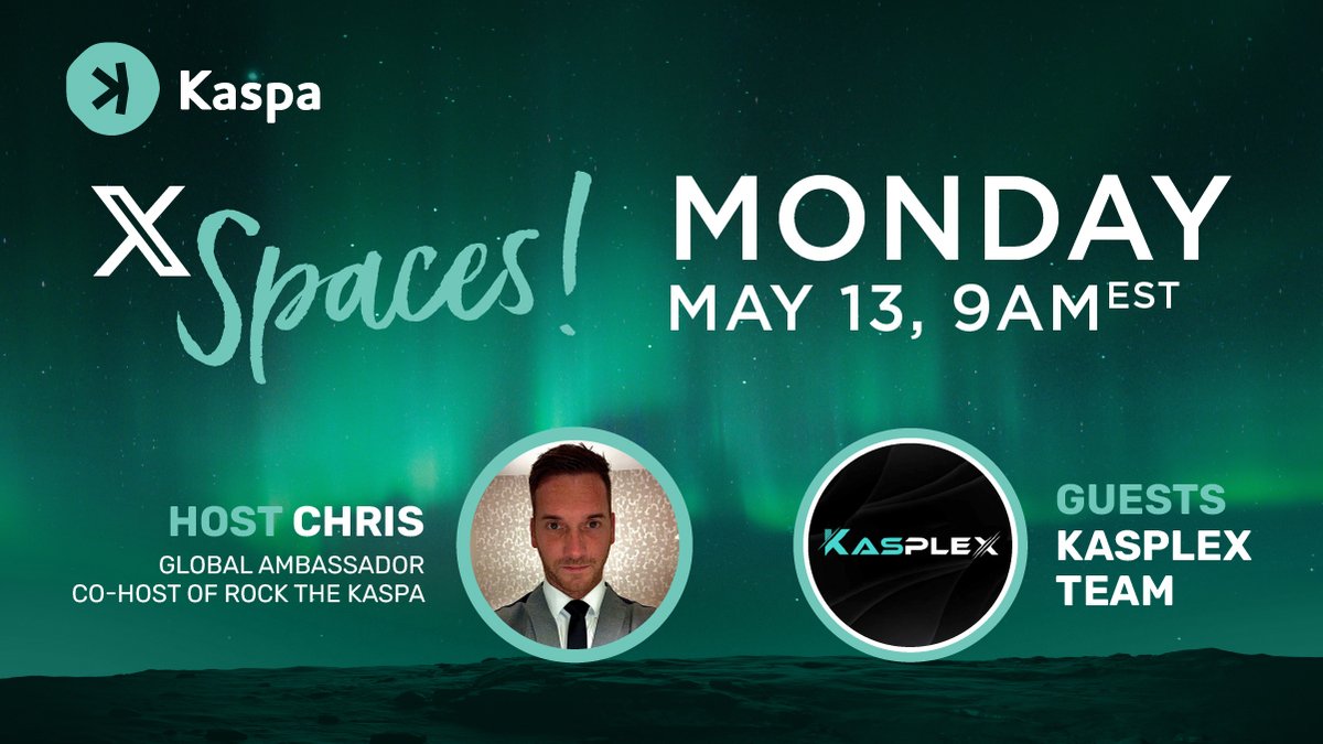 The Official Kaspa X Profile: You’ve asked – so here it is! 🗓️DATE: May 13th 9AM EST https://t.co/45GAl7JGTD 🎙️HOST: Co-host and UK/Global Ambassador, Chris 💬GUESTS: Crew TOPIC: The relationship between KRC20 & Kasplex, Closed Beta, Open Beta and more! (English)… pic.twitter.com/w81OaLzLZW— Kaspa (@KaspaCurrency) May 9, 2024